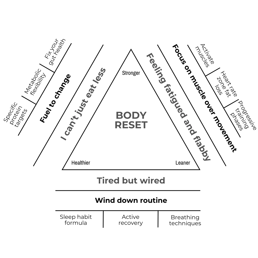 Most programs focus on restriction, rules, or short-term fixes. We focus on repairing what’s under the hood—your gut, metabolism, and key biomarkers—so your body actually wants to lose fat, gain energy, and stay consistent long-term. No crash diets. No flogging yourself in the gym. This is built to last.