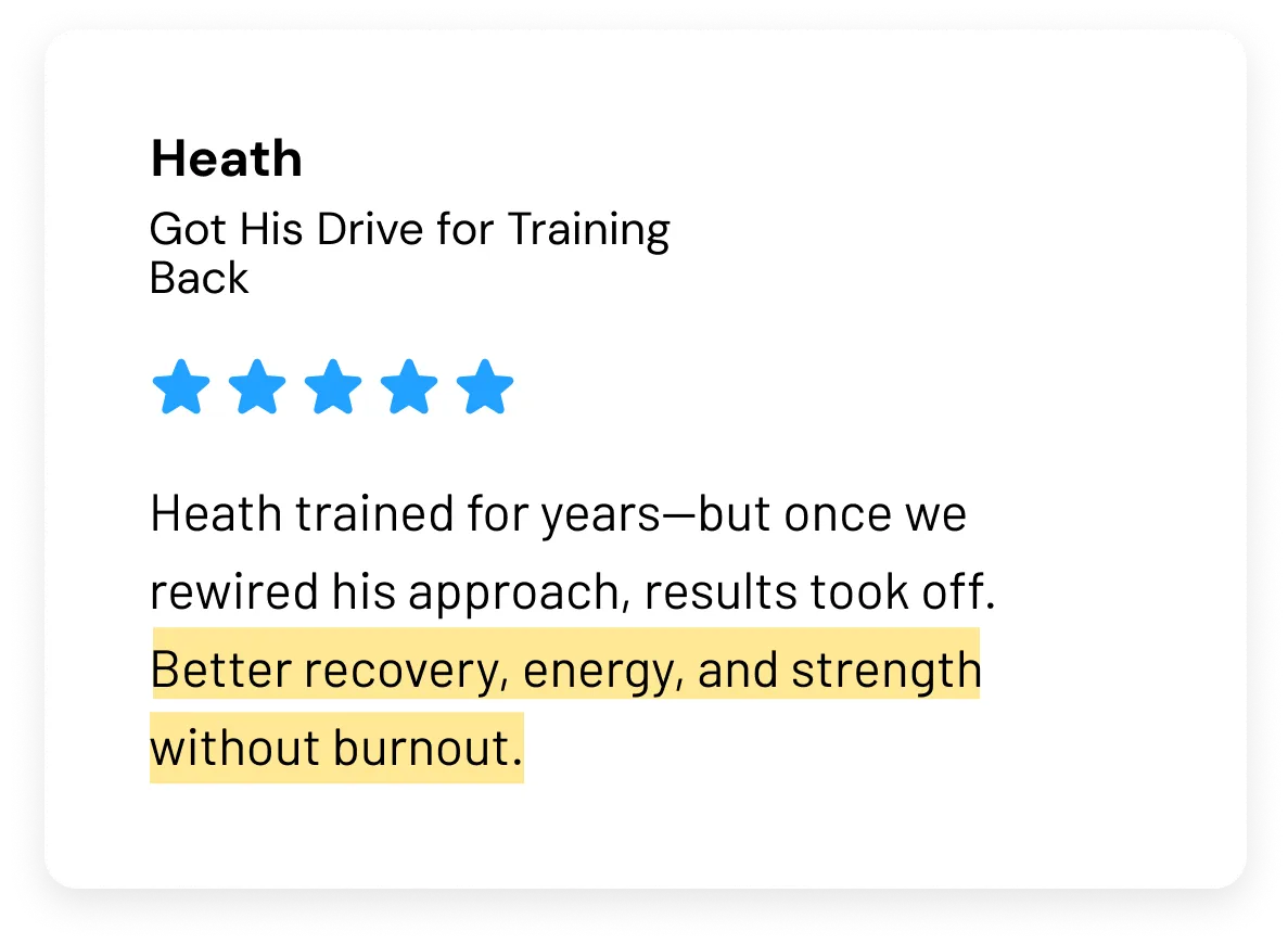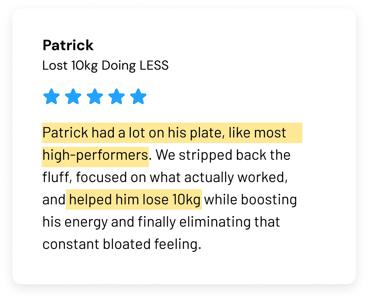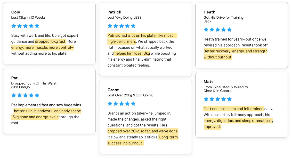 ... helping high-performing clients finally feel like themselves again, without needing hours in the gym, restrictive diets, or wasting money on supplements that don’t work…